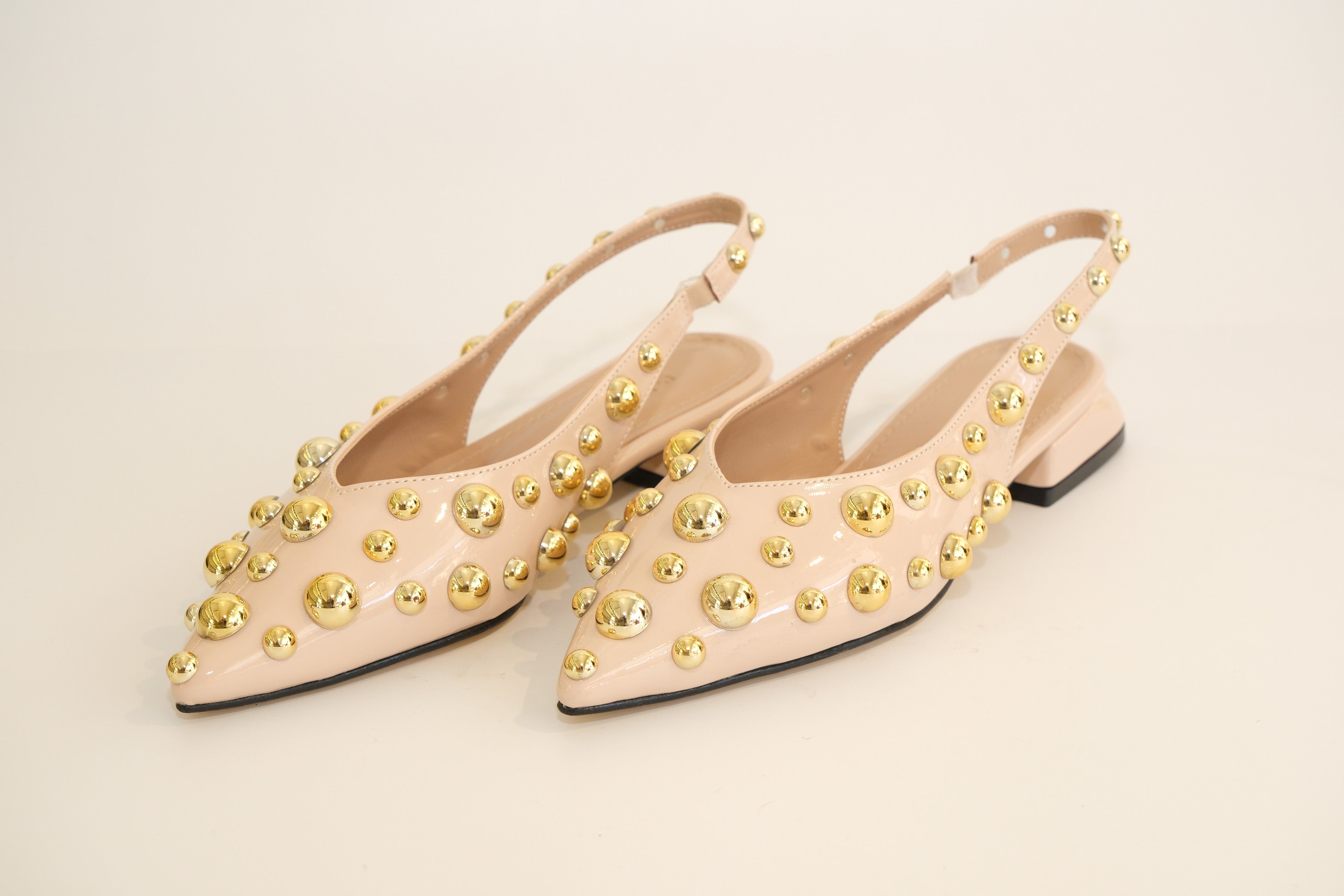 Bej Sivri Burun Gold Taş Detaylı Babet