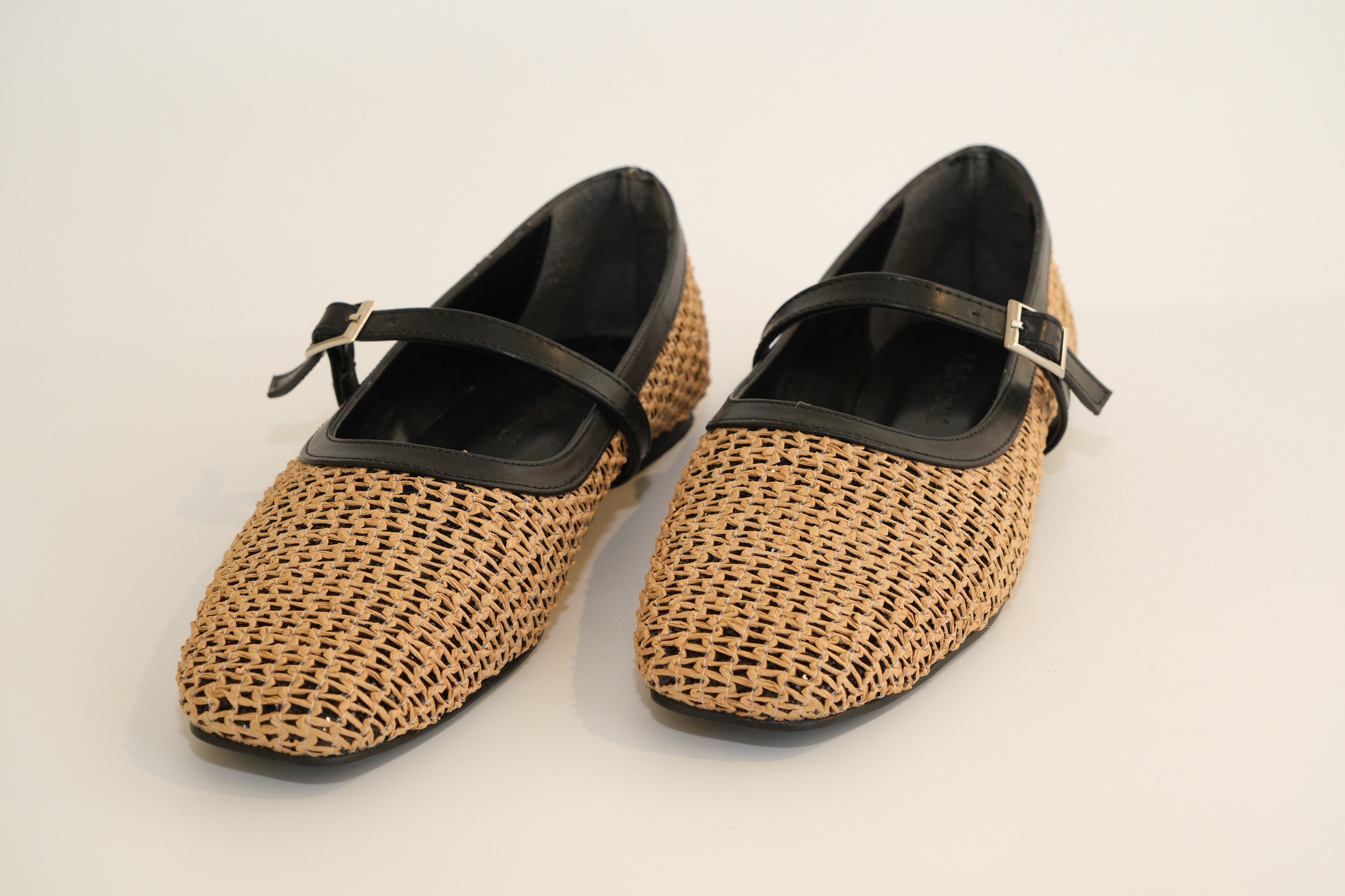 Doğal şıklığı modern dokunuşlarla buluşturan bu hasır dokulu parıltılı babet, hem sade hem dikkat çekici tarz arayanların favorisi olmaya aday. Günlük kombinlerinize zarif bir ışıltı katın.