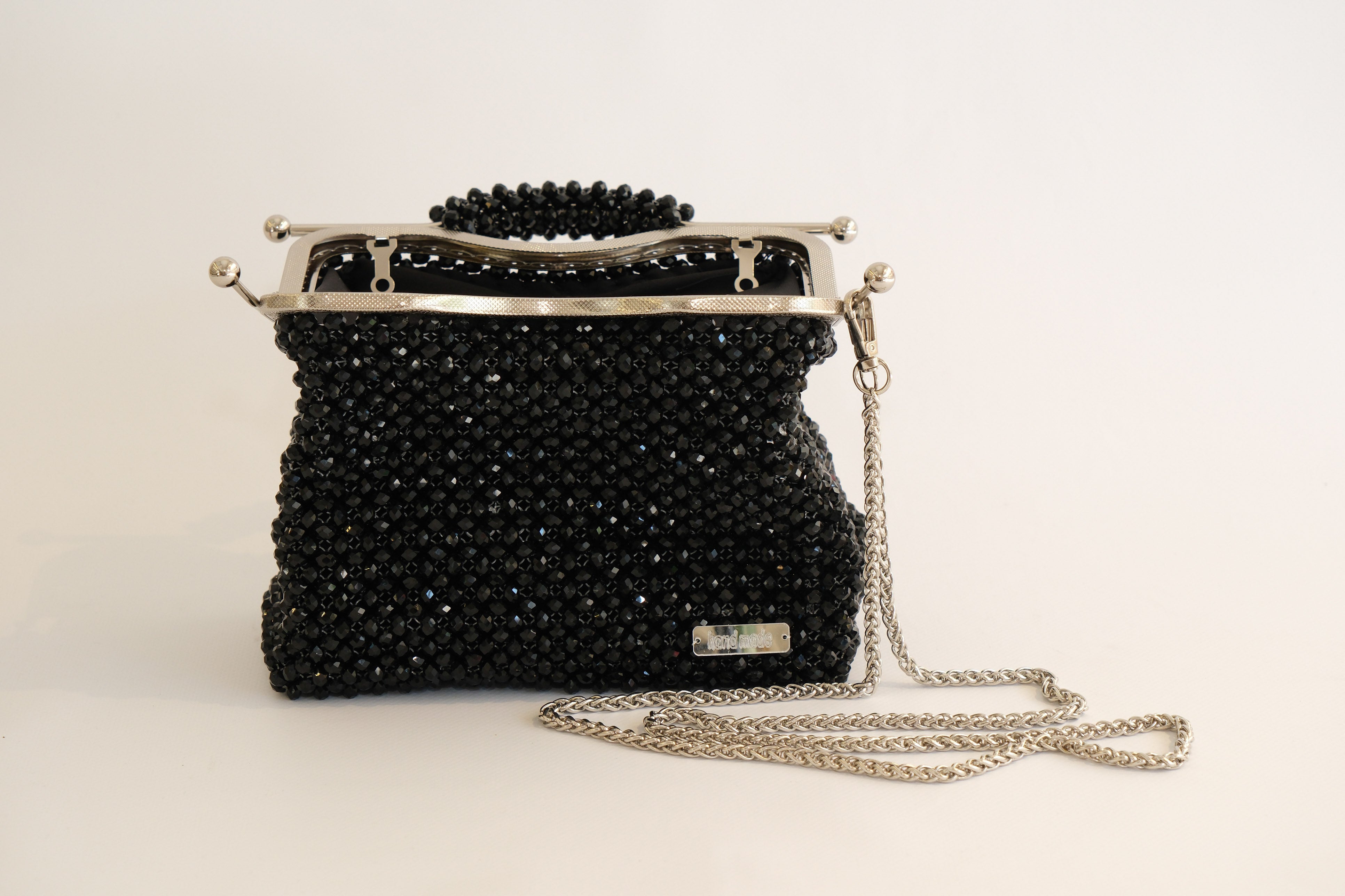 El yapımı şıklığın modern tasarımla buluştuğu bu siyah boncuklu çanta, göz alıcı gümüş detaylarıyla stilinize sofistike bir dokunuş katıyor. Çıkarılabilir uzun askısı sayesinde hem elde taşınabilir hem de omuzdan asılarak kullanılabilir. Zarif yapısı ve işlevsel tasarımıyla özel davetlerden günlük kombinlere kadar her ortamda öne çıkmanızı sağlar.