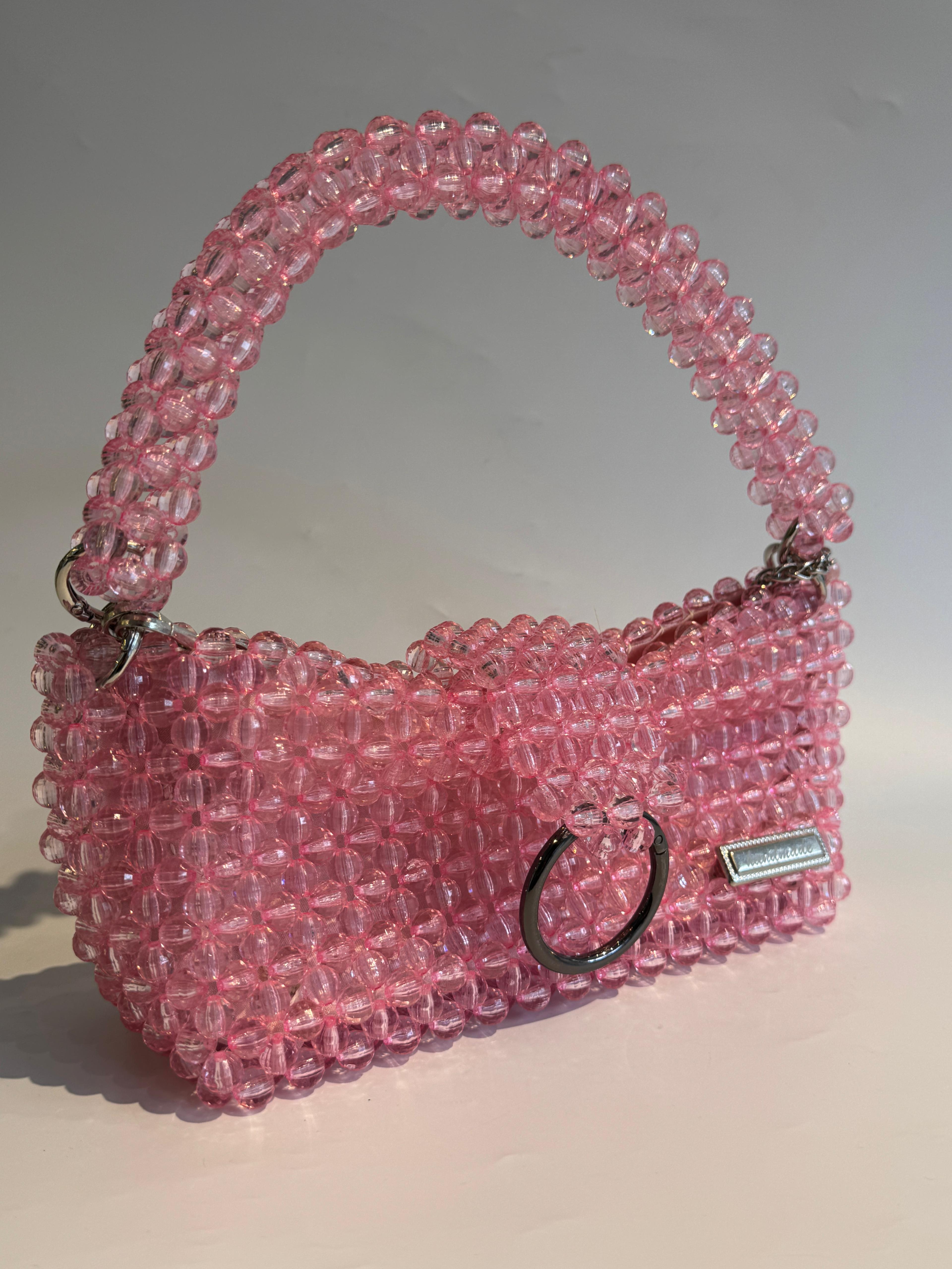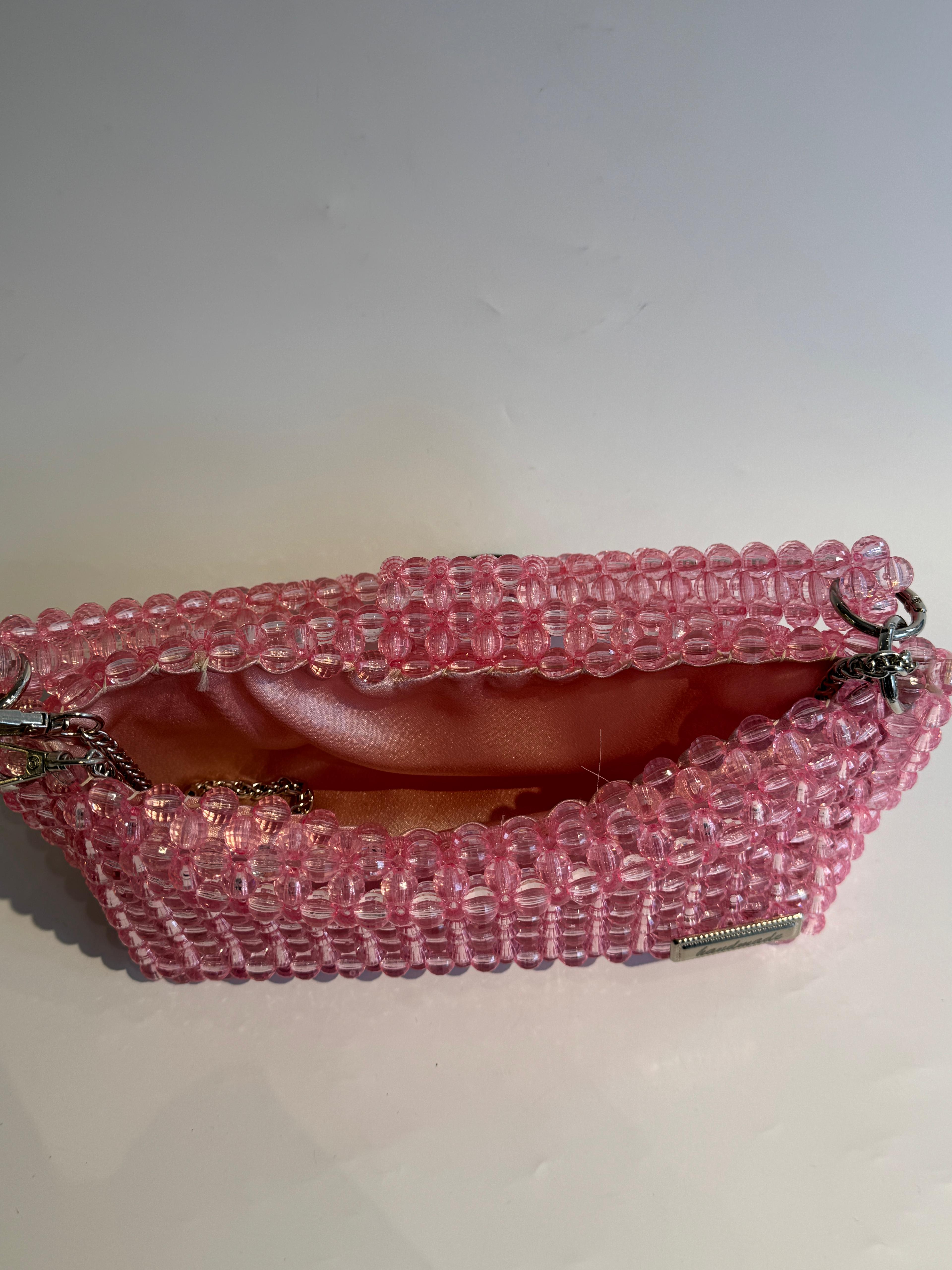 - Şık ve zarif tasarımıyla her kıyafetinize uyum sağlayacak ETERNA kadın pembe astarlı boncuk çanta.