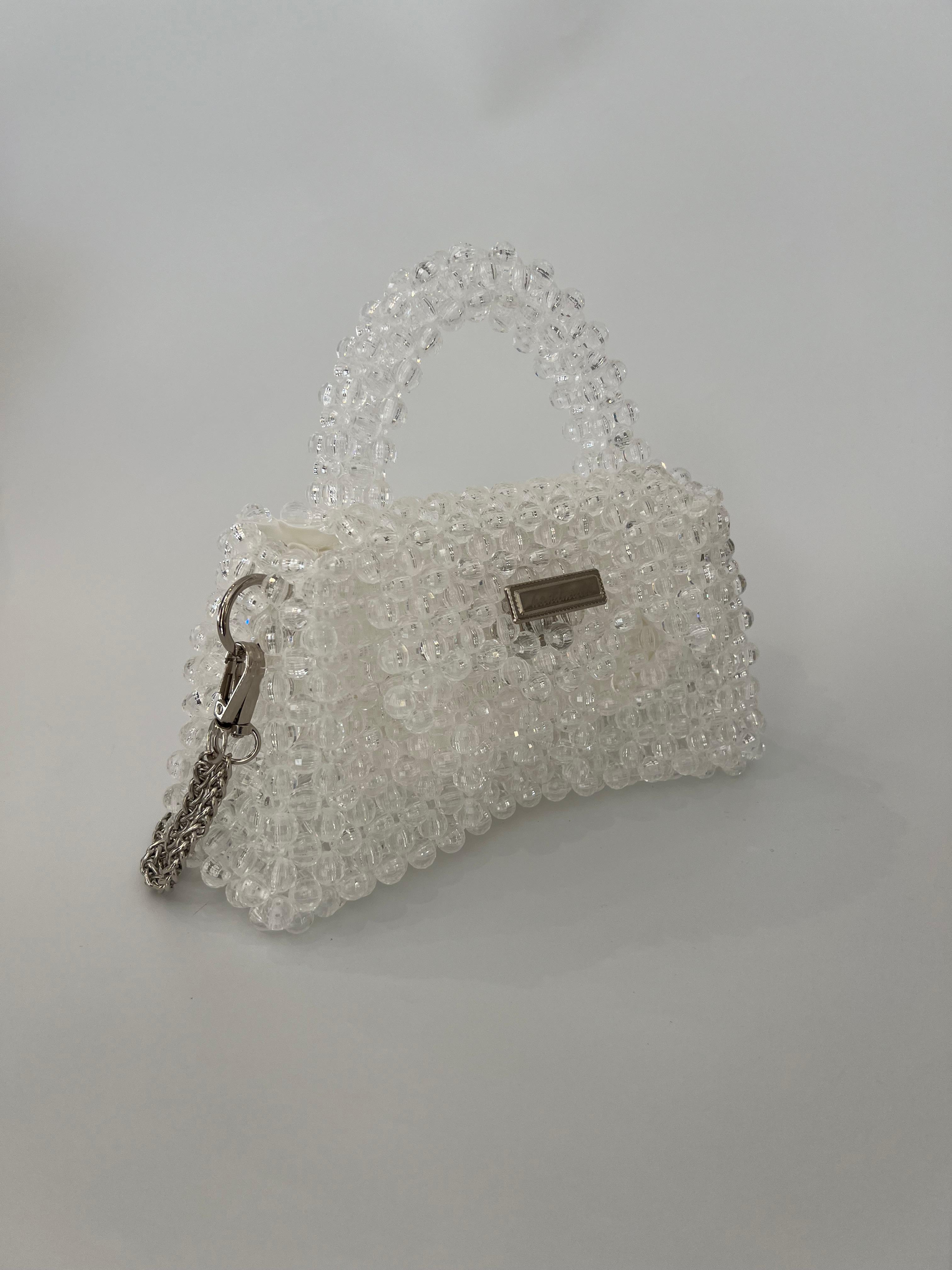 Zarif el işçiliğiyle tasarlanan el yapımı şeffaf boncuk çanta, modern ve dikkat çekici bir stil sunuyor. Hem elden tutmalı hem de zincir omuz askılı yapısı sayesinde çok yönlü kullanım imkânı sağlar. Şeffaf boncuk detayları, çantaya şık ve zarif bir ışıltı katarken, farklı kombinlerle kolayca uyum sağlayan modern bir görünüm oluşturur. Günlük şıklığın yanı sıra davetlerde, özel organizasyonlarda ve akşam kombinlerinde stilinizi tamamlayan göz alıcı bir aksesuar olur.