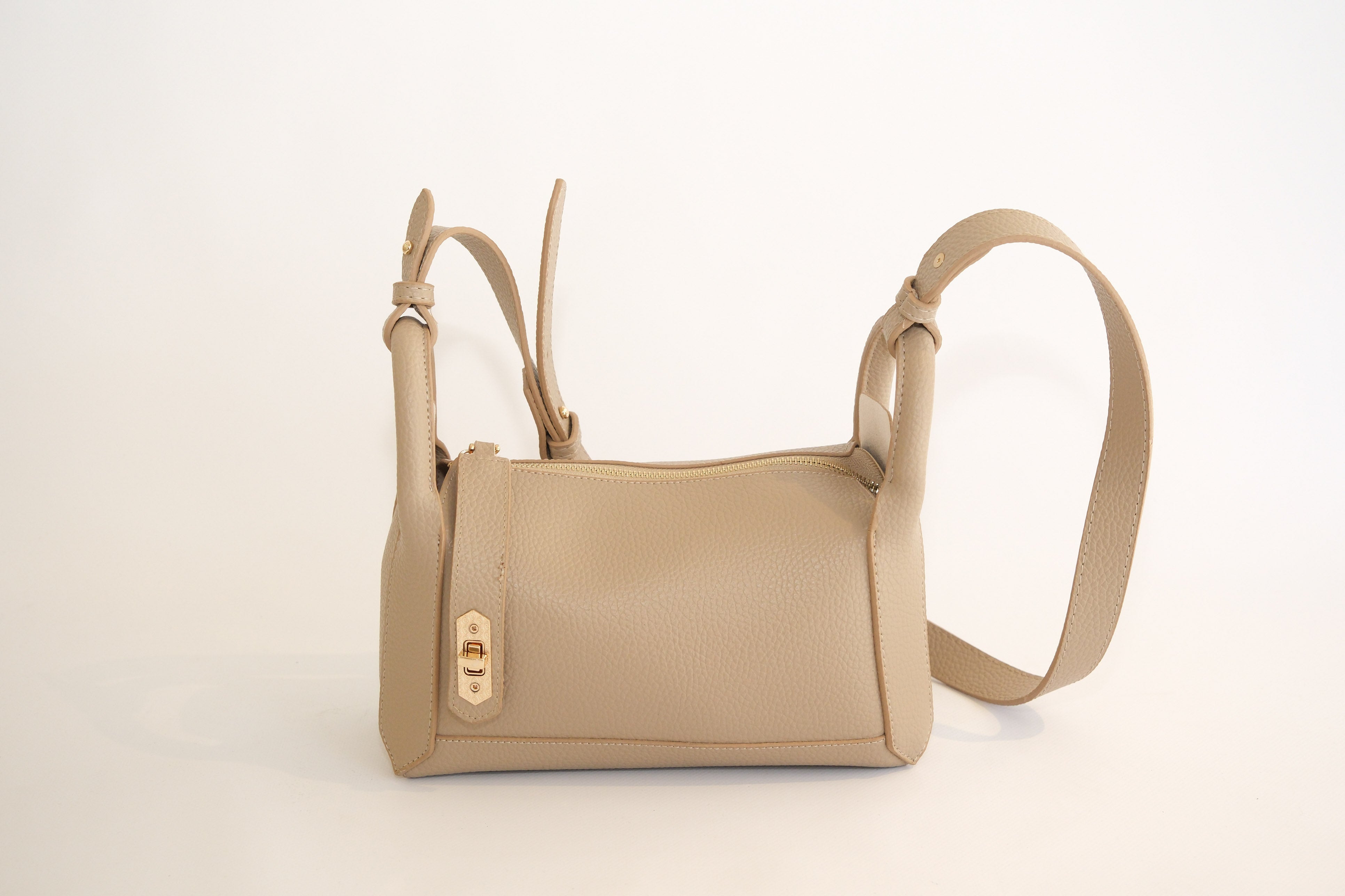 Zarif detaylarıyla stilinize ışıltı katacak bu bej omuz çantası, sade tasarımını gold dokunuşlarla zenginleştiriyor. Ayarlanabilir askısı sayesinde konforlu bir kullanım sunan çanta, günlük kombinlerden özel davetlere kadar her ortamda şıklığınızı tamamlar. Minimal yapısına rağmen etkileyici duruşuyla dikkat çeker.