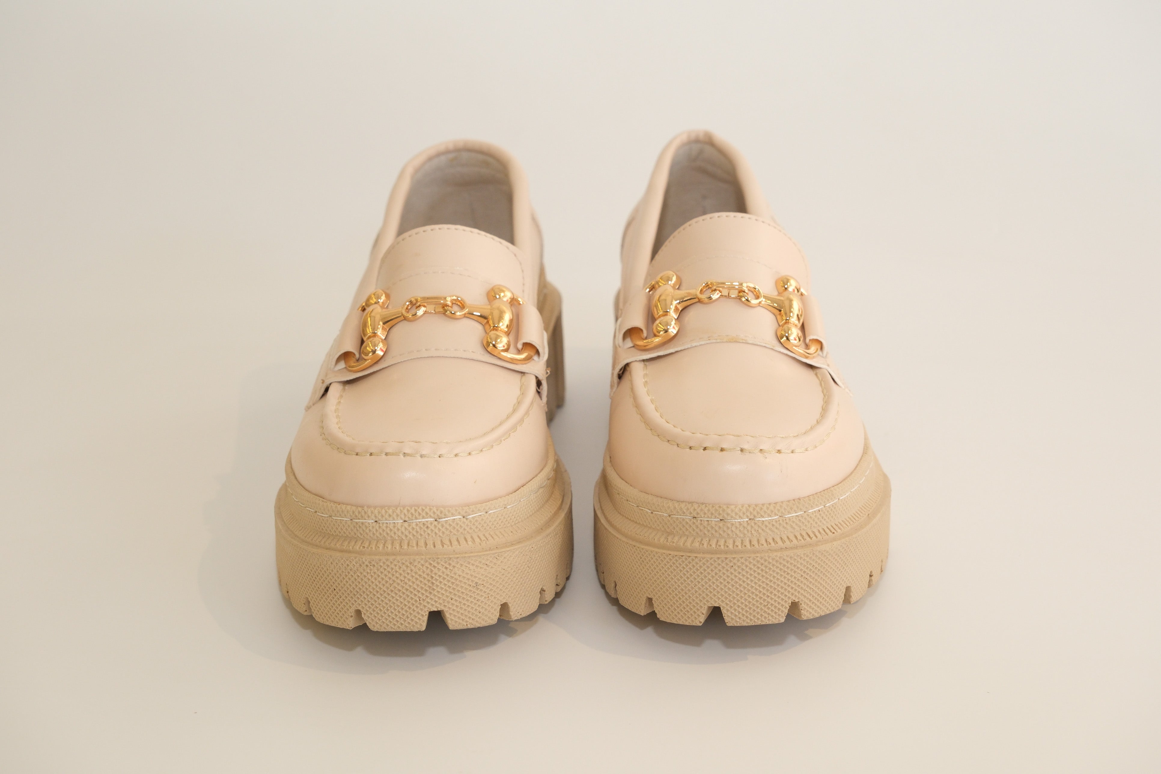 Bej Gold Tokalı Yüksek Taban Loafer