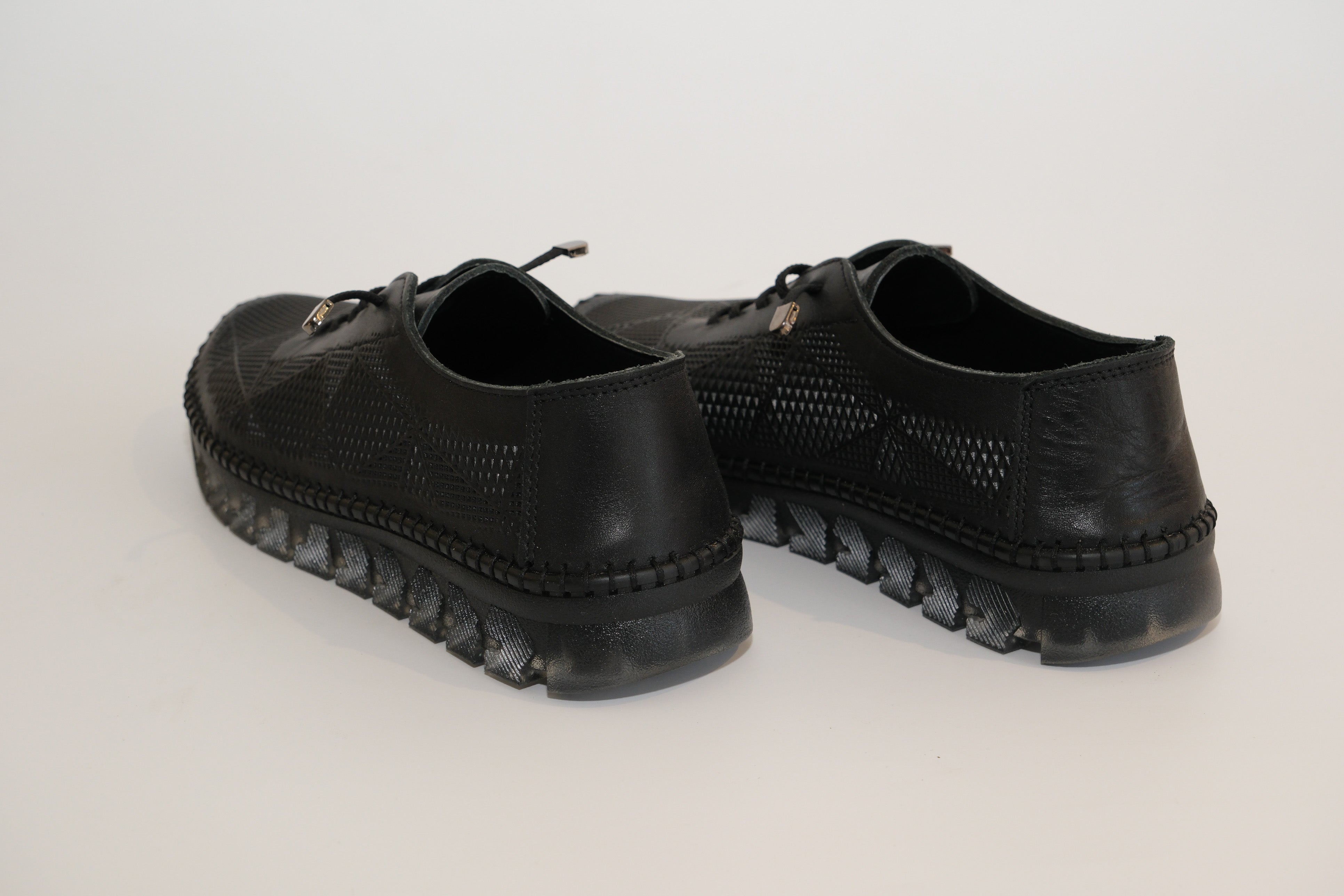 Siyah Deri Görünümlü Rahat Tabanlı Spor Ayakkabı