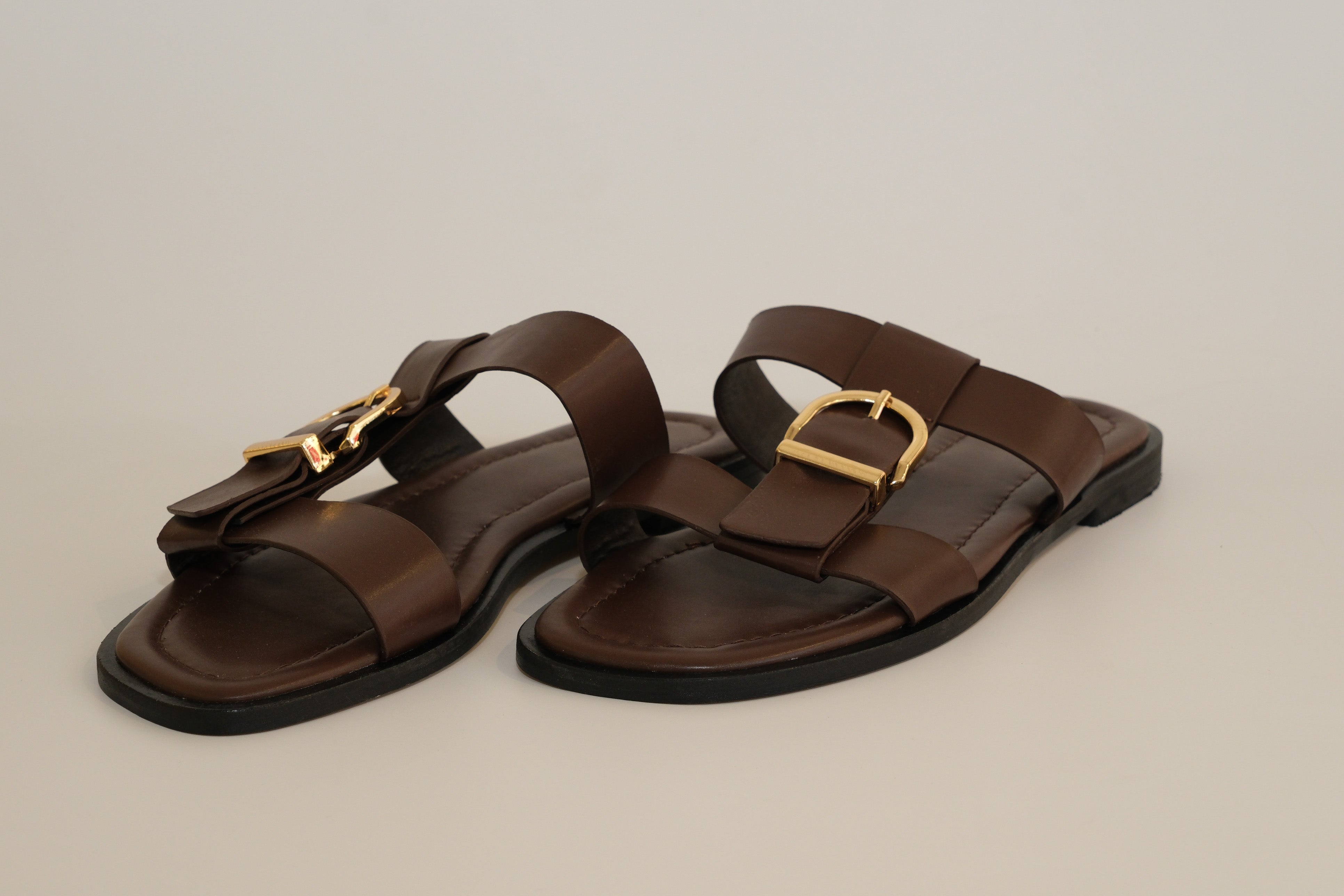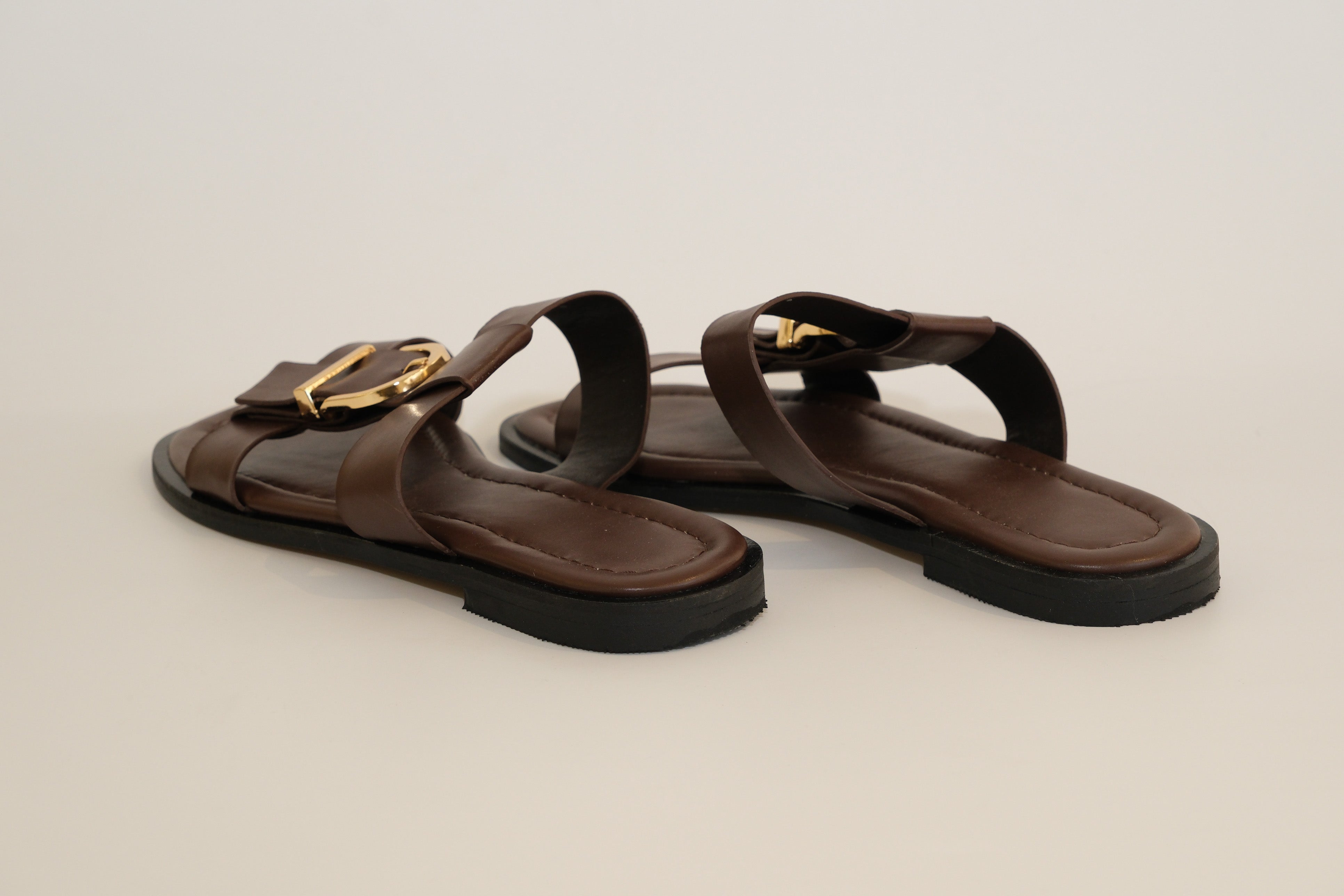 Zarif gold toka detayıyla öne çıkan bu kahverengi terlik, klasik ve modern tarzı bir araya getirir. Rahat tabanı sayesinde gün boyu konfor sunarken, şık tasarımı günlük ve özel kombinlerinize kolayca uyum sağlar. Evde veya dış mekan kullanımı için ideal, stil sahibi kadınların tercihi.