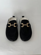 Soğuk günlerde hem şıklığı hem de konforu bir arada yaşatan siyah süet kürklü kışlık terlik, yumuşak kürk iç astarıyla maksimum sıcaklık sağlar. Kaliteli süet dokusu ve gold tokalı detayı sayesinde zarif bir görünüme kavuşurken, ergonomik tabanı gün boyu rahat kullanım imkânı sunar. Evde, ofiste ya da kısa dış mekan kullanımlarında şık bir alternatif olarak tercih edilebilir.