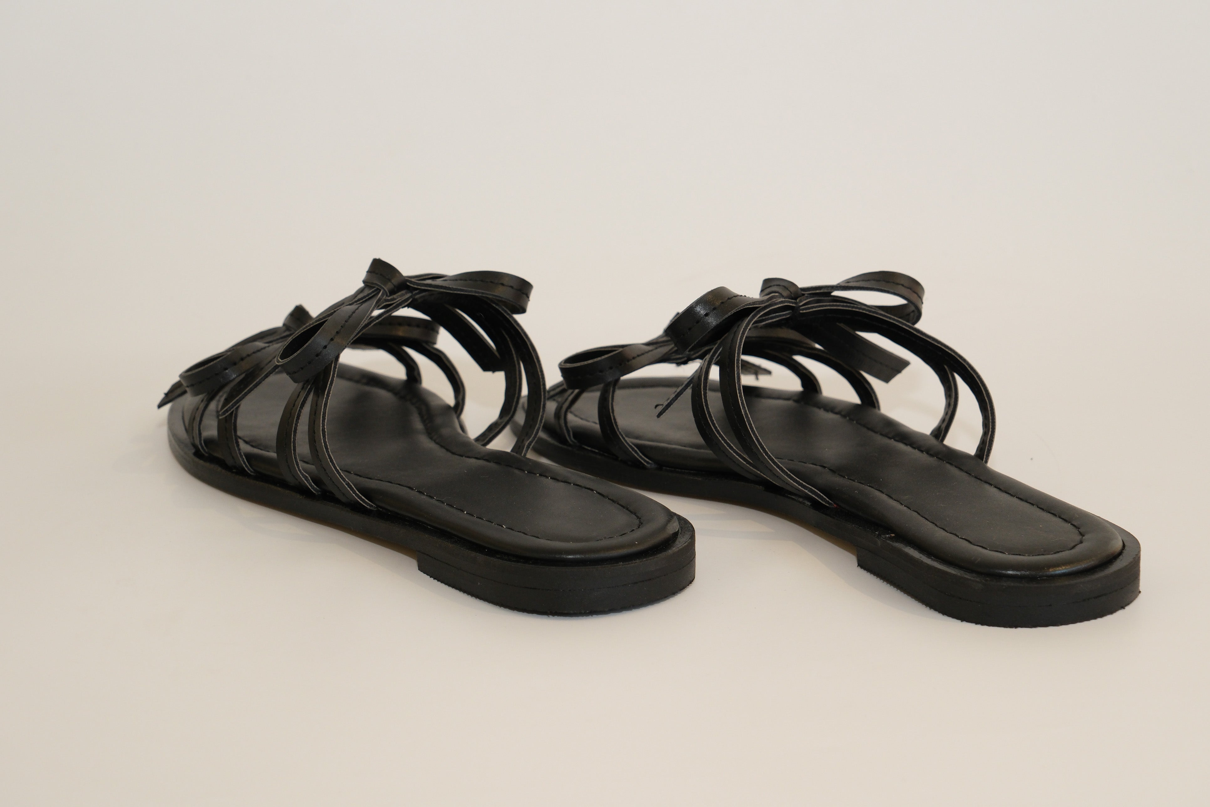 Zarif çift kurdele süslemeleriyle dikkat çeken bu siyah terlik, hem şık hem konforlu bir kullanım sunar. Günlük kombinlerinizi tamamlayacak doğal tonlarıyla stilinize sıcaklık katarken, rahat tabanı sayesinde gün boyu konfor sağlar. Evde ya da dışarıda rahatlıkla tercih edebileceğiniz ideal bir model.
