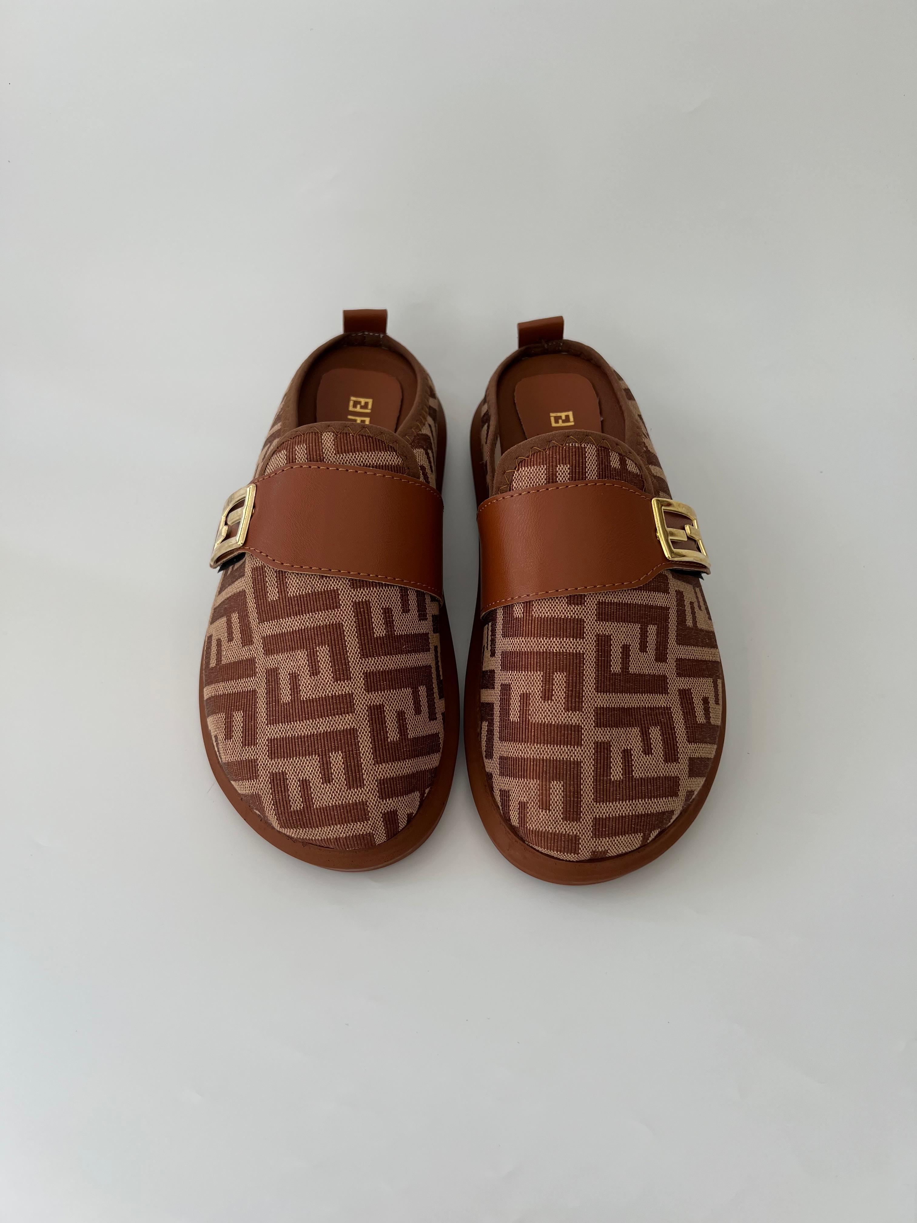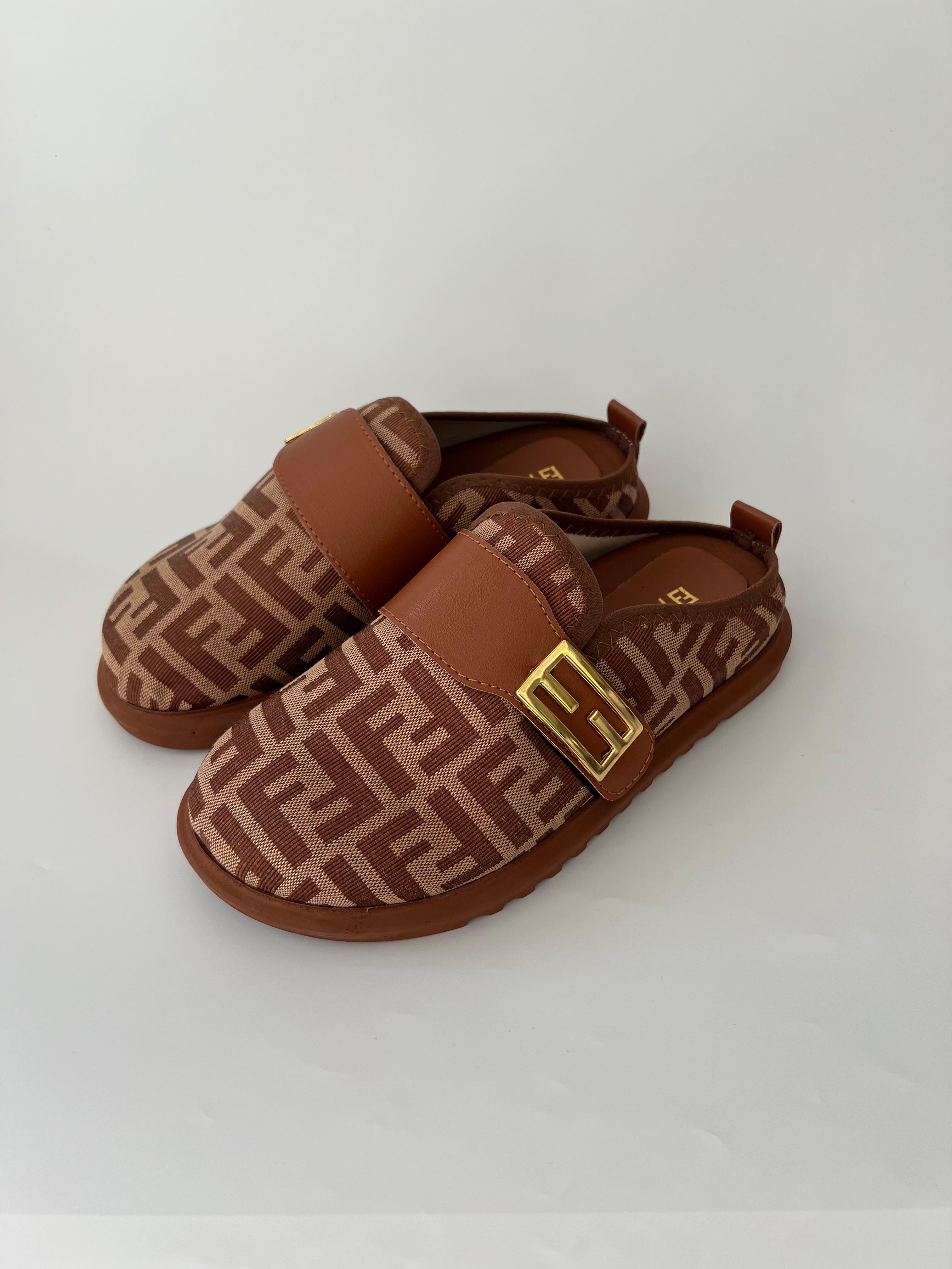 Modern tasarımı ve dikkat çekici desenleriyle fark yaratan bu kahverengi terlik, hem konfor hem de stil arayanlar için ideal bir seçim. Kaliteli kumaş yüzeyi, zarif geometrik desenleri ve altın rengi tokasıyla lüks bir görünüm sunar.