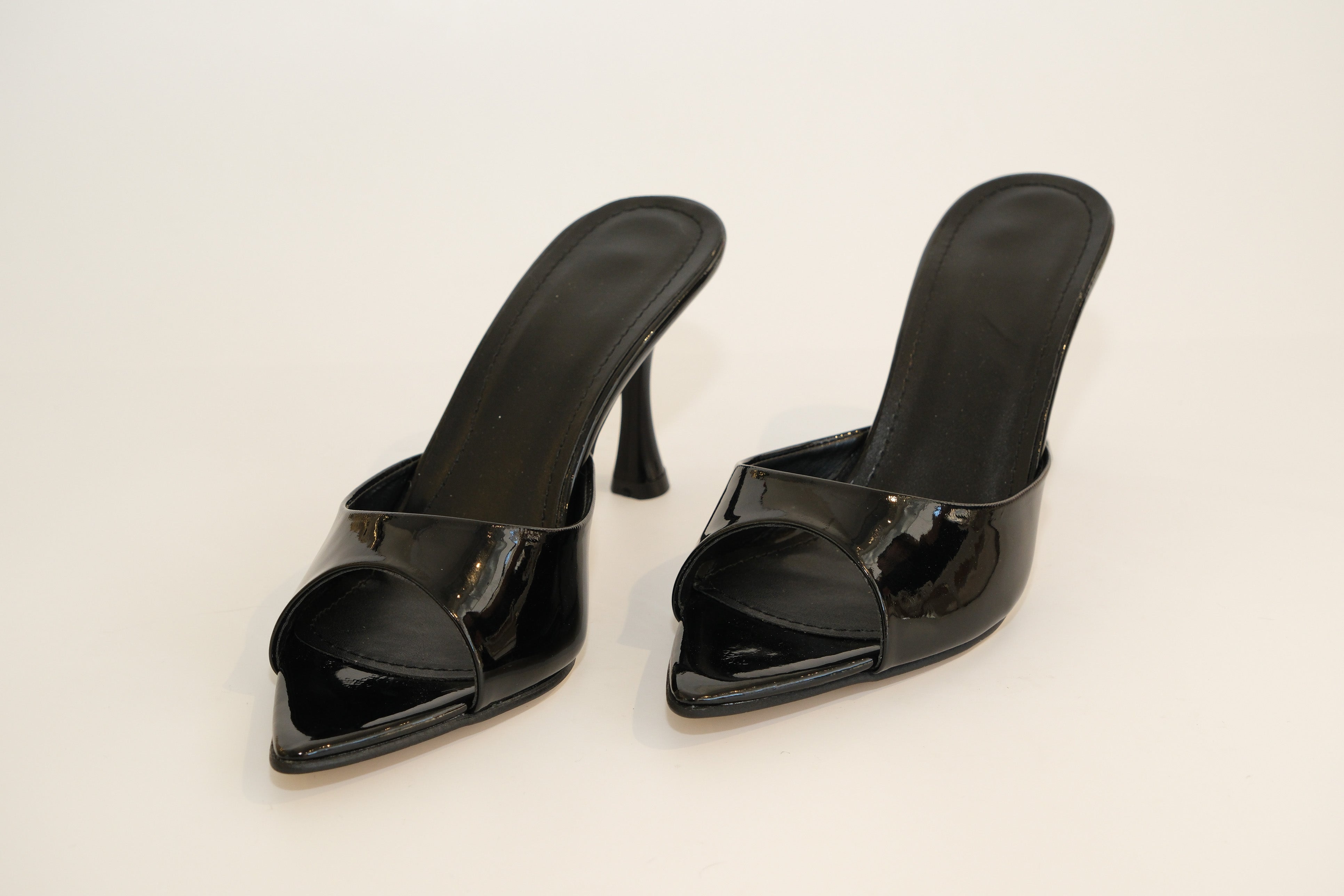 Siyah Rugan Önü Açık Kadeh Topuklu Terlik