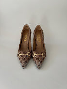 Işıltılı tasarımıyla dikkat çeken kadın üzeri tokalı ve parlak taşlı desenli topuklu ayakkabı, özel günlerde ve davetlerde stilinizi en şık şekilde yansıtmanıza yardımcı olur. Tokalı detayı ayakkabıya modern bir dokunuş katarken, parlak taşlı desenleri zarafeti ön plana çıkarır. Konforlu kalıbı sayesinde hem uzun süreli kullanımda rahatlık sunar hem de feminen duruşu ile kombinlerinize sofistike bir hava katar.