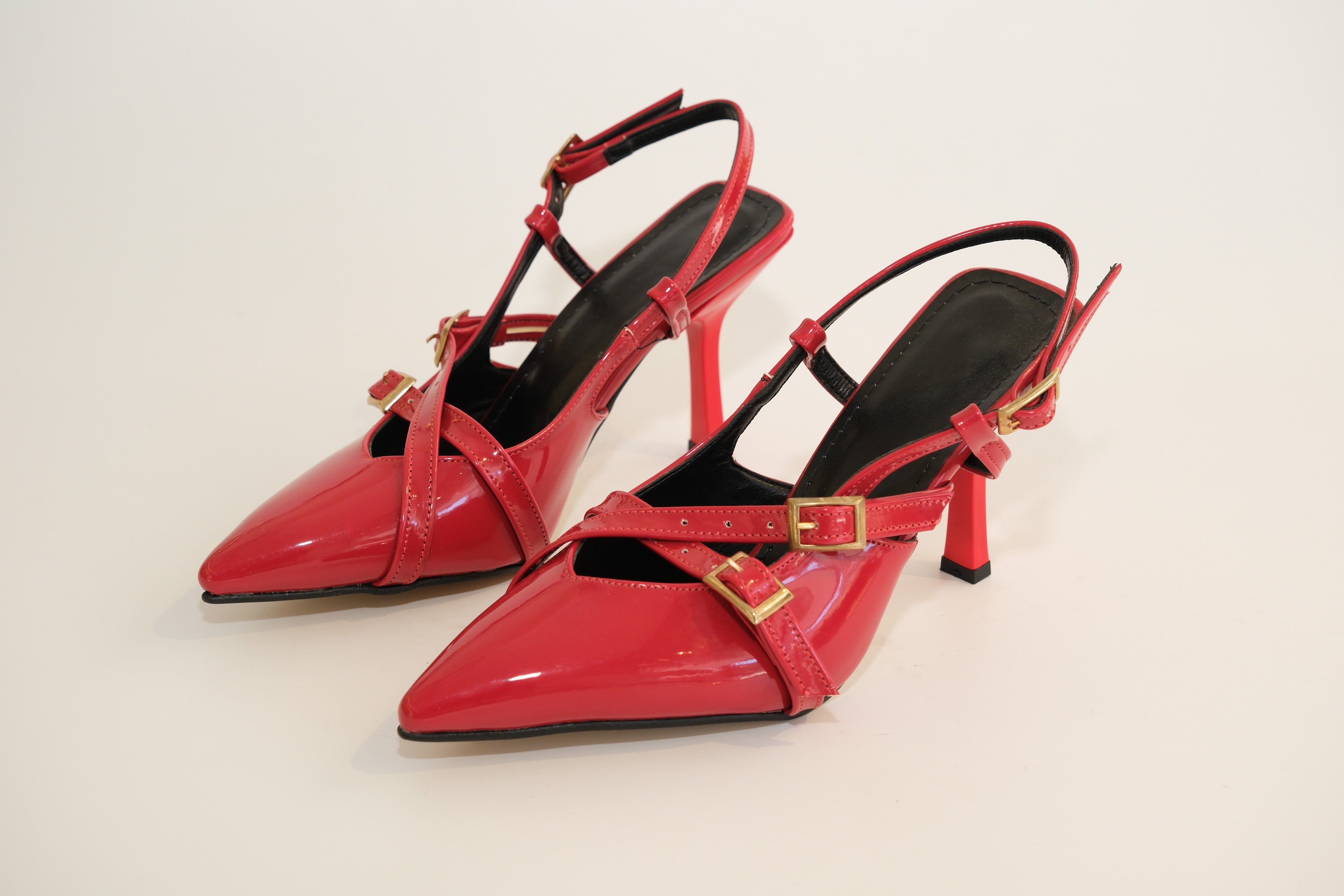 Tutkulu kırmızının zarif formda buluştuğu kırmızı sivri burunlu ince kısa topuklu ayakkabı, hem sade hem etkileyici bir stil sunar. Sivri burun tasarımı ayakları ince ve zarif gösterirken, kısa ve ince topuk yapısı gün boyu konforlu bir kullanım sağlar.
