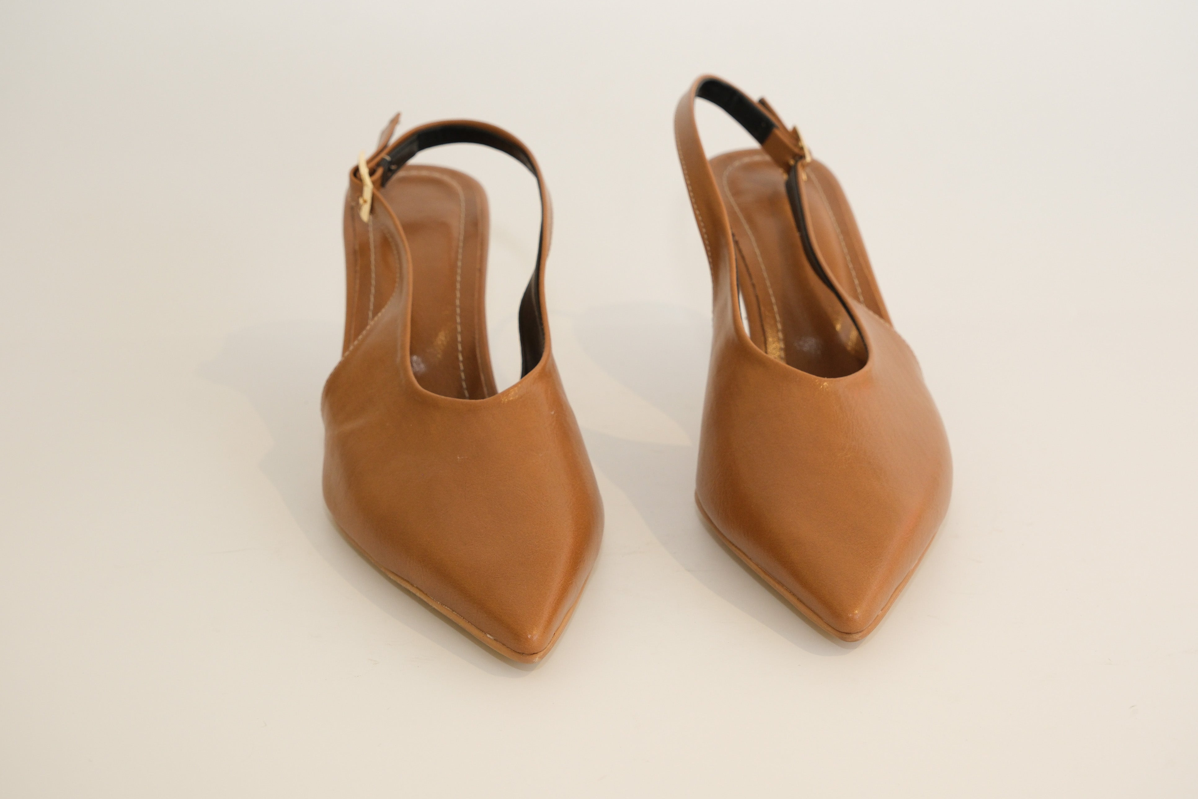 Taba Deri Görünümlü Kısa İnce Topuklu Ayakkabı