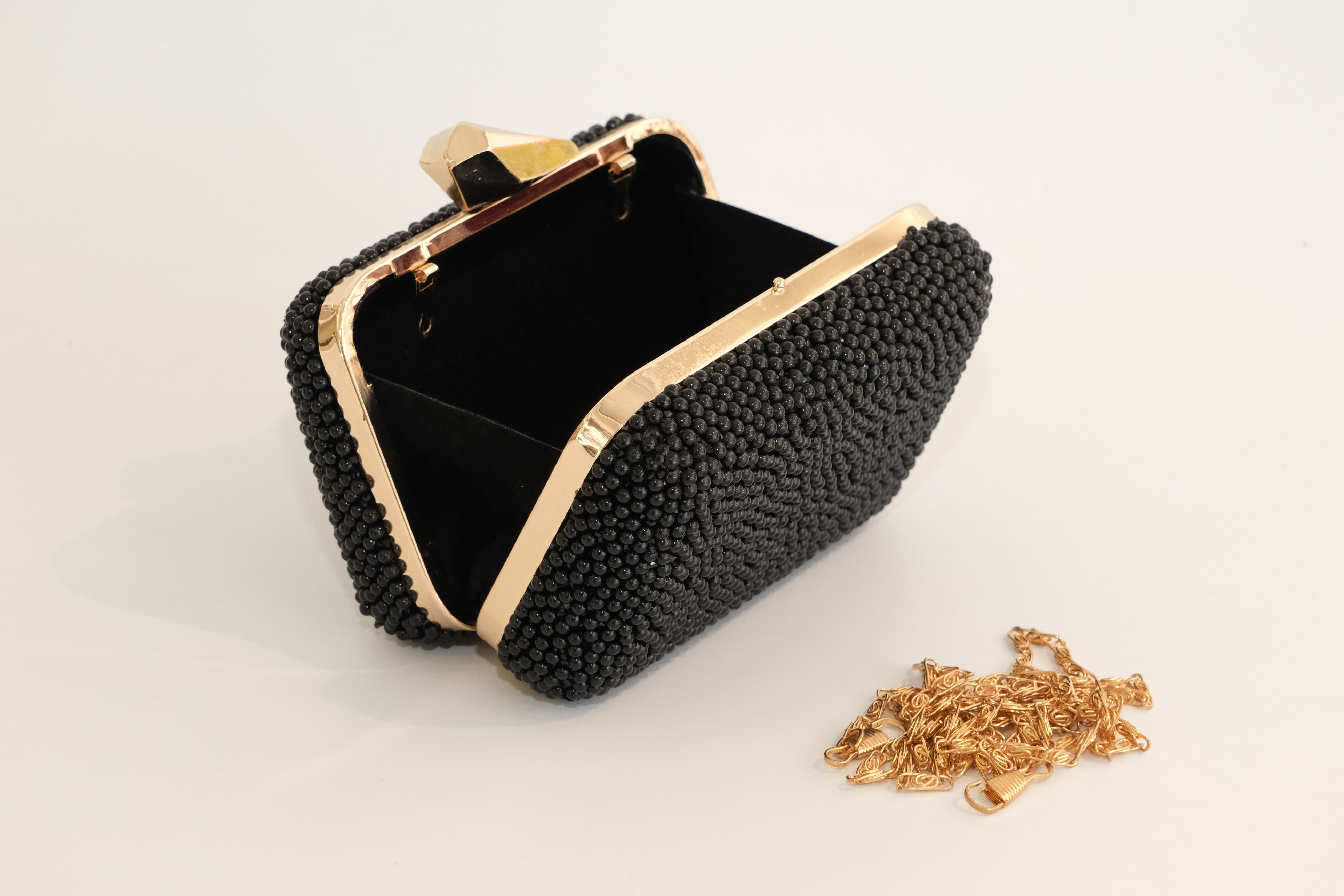 Siyah Boncuk Kaplamalı Gold Detaylı Mini Çanta