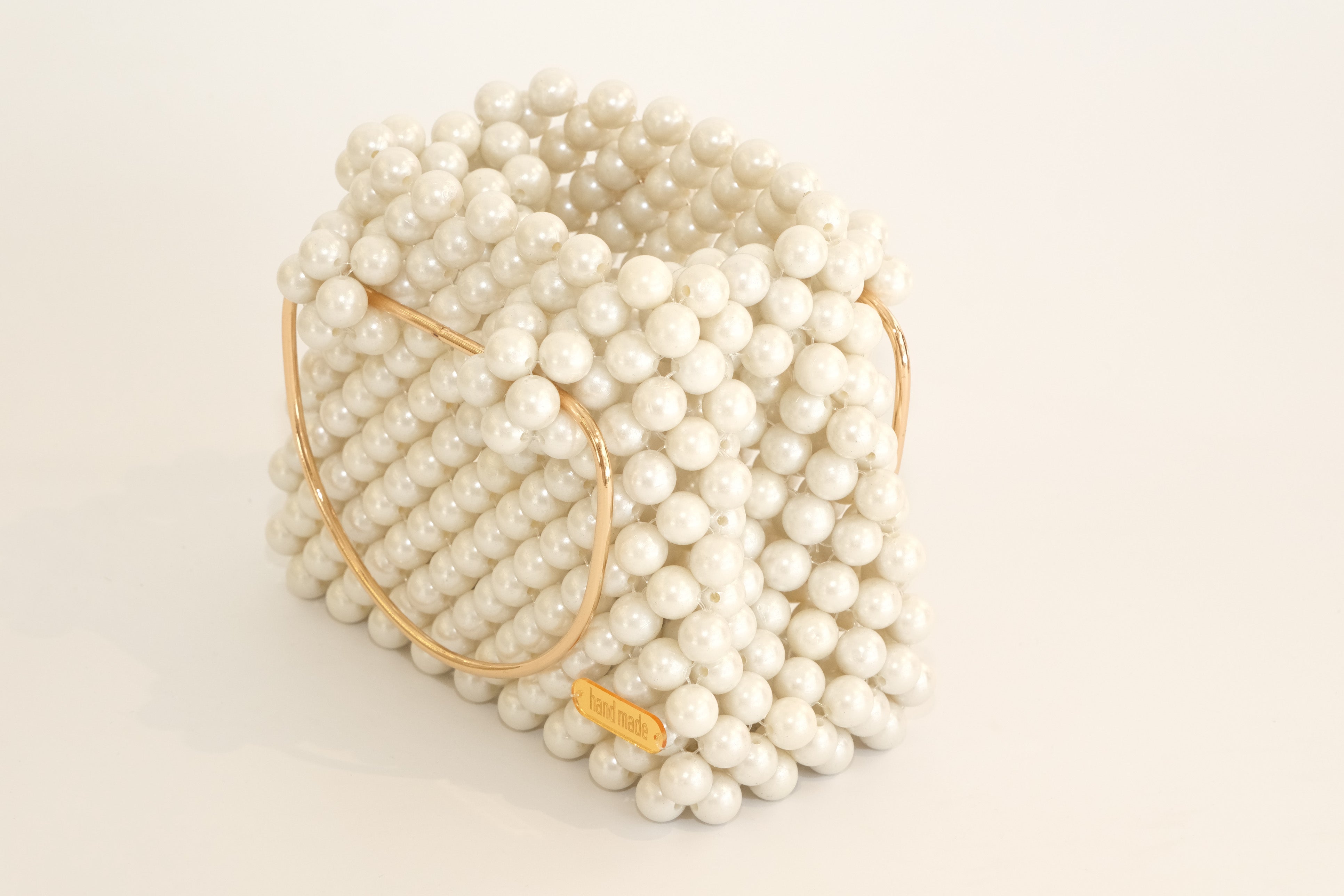Tamamı özenle dizilmiş inci detaylarıyla bezenmiş bu el yapımı çanta, gold renkli tutma sapları ile şıklığı en zarif haliyle sunuyor. Hem modern hem klasik kombinlerinize zarafet katar. Özel günlerde ve davetlerde stilinizi öne çıkaracak eşsiz bir tamamlayıcı.