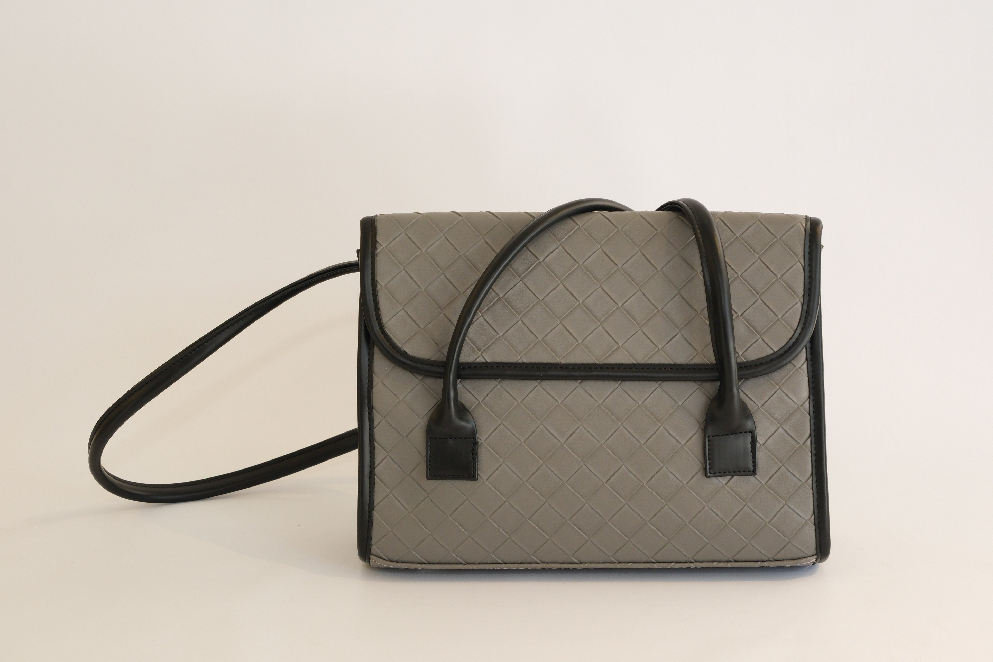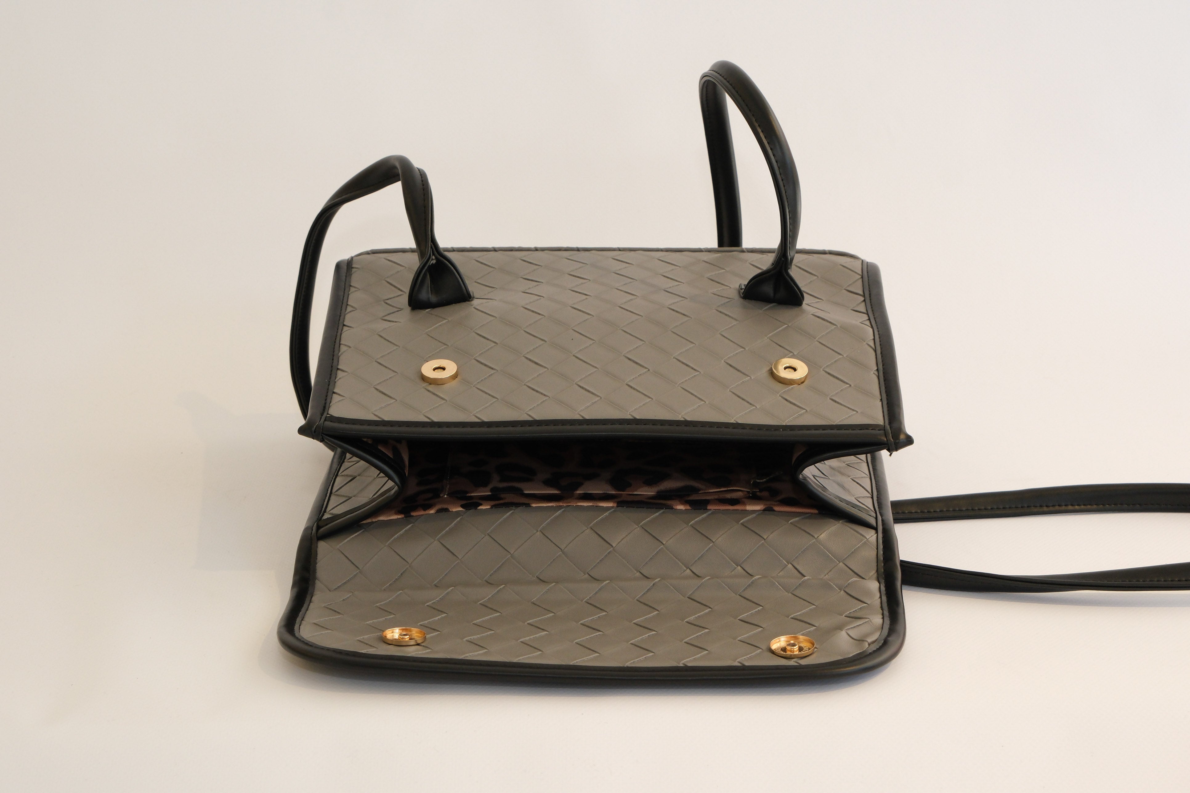 Gri Desenli, Siyah Kenar Çerçeveli ve Uzun Askılı Çanta