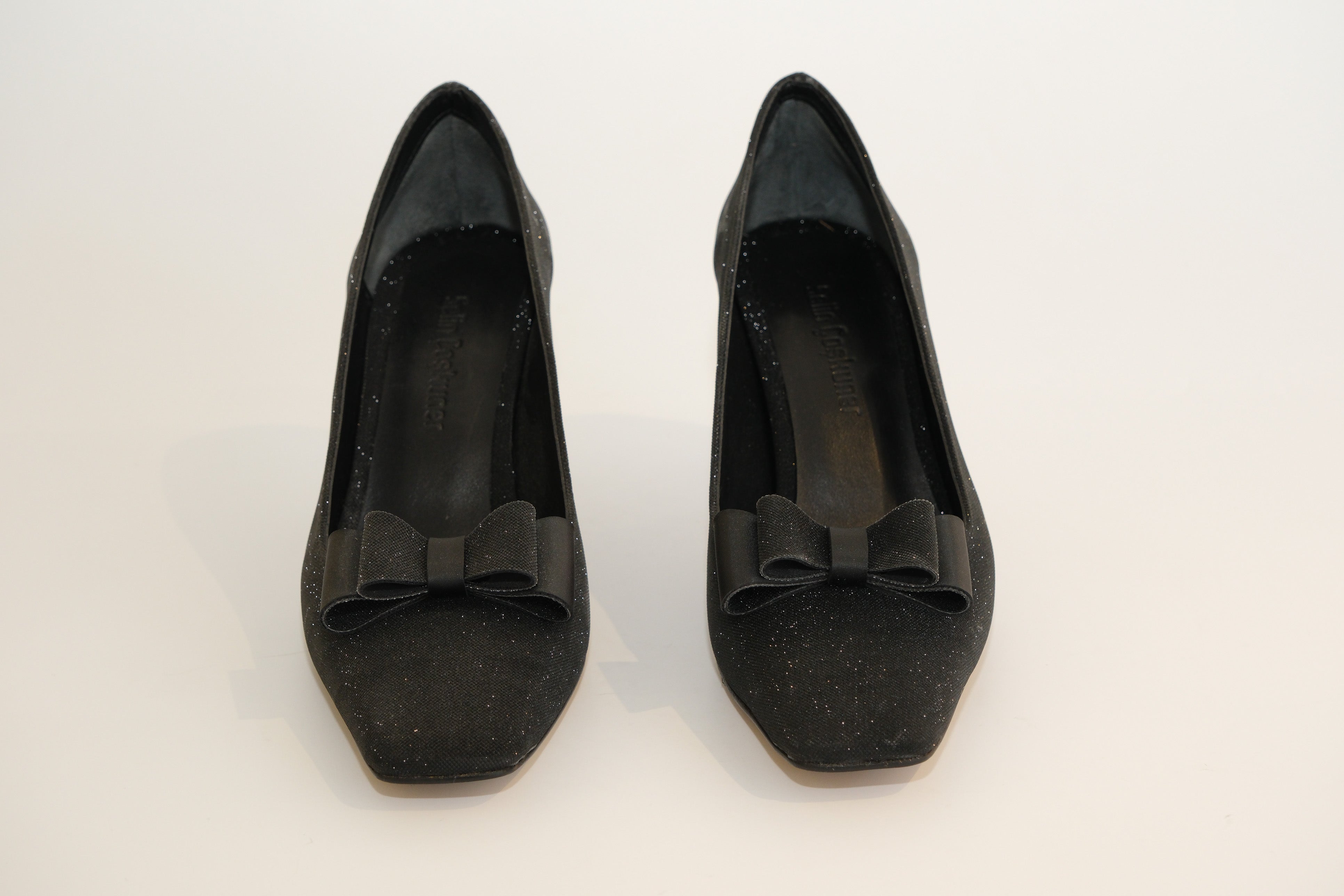 Zarafet ve ışıltının buluştuğu siyah fiyonklu parıltılı kadeh topuklu ayakkabı, özel günlerinizin vazgeçilmezi olacak şıklığı sunar. Önündeki zarif fiyonk detayı feminen bir dokunuş katarken, parıltılı yüzey tasarıma göz alıcı bir ışıltı ekler.