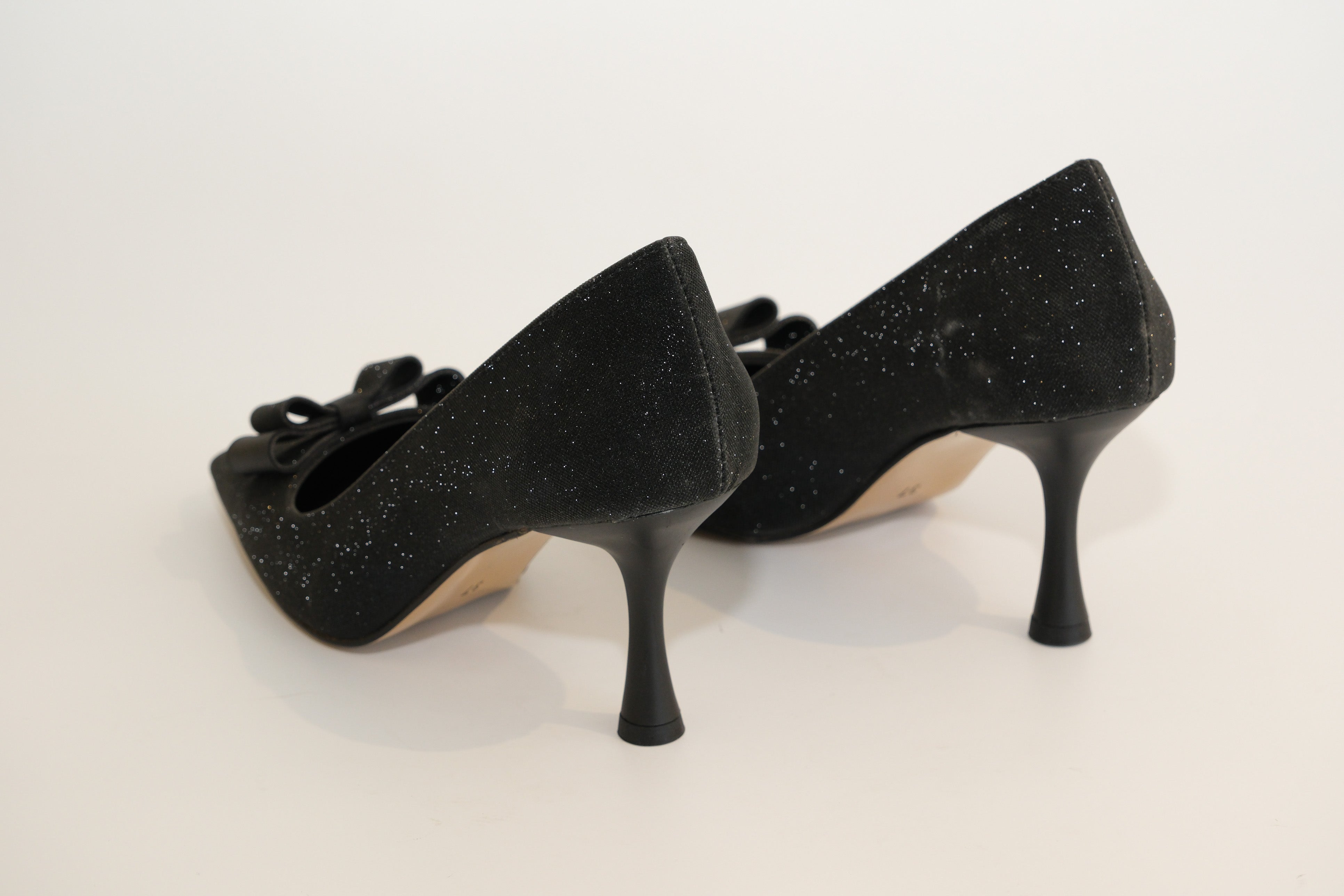Fiyonklu ve Parıltılı Siyah Kadeh Topuklu Ayakkabı